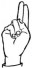 На ћирилици написано КОСТАДИН БРЕСНОПОЉАЦ састоји се из 19 слова [?]. Исписано ћириличном једноручном азбуком за глувонеме: